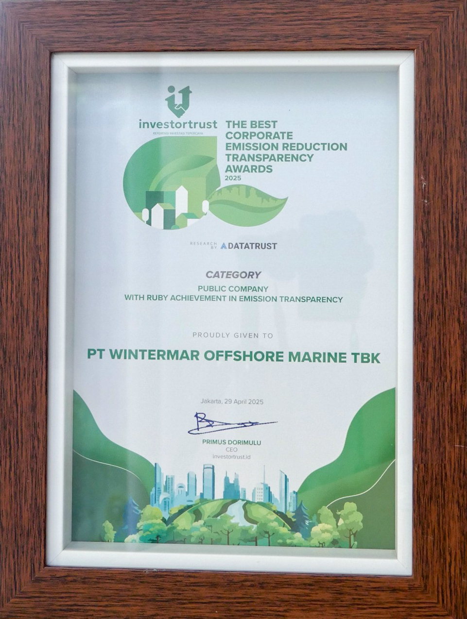 Wintermar’s governance framework ensures ethical conduct, transparent reporting, and responsible risk management across all operations. We operate under strong corporate values, with Integrity at the core of our business. We operate to the highest standards of compliance and accountability, aligned with both OJK regulations and international best practices to support long-term sustainability for all stakeholders.